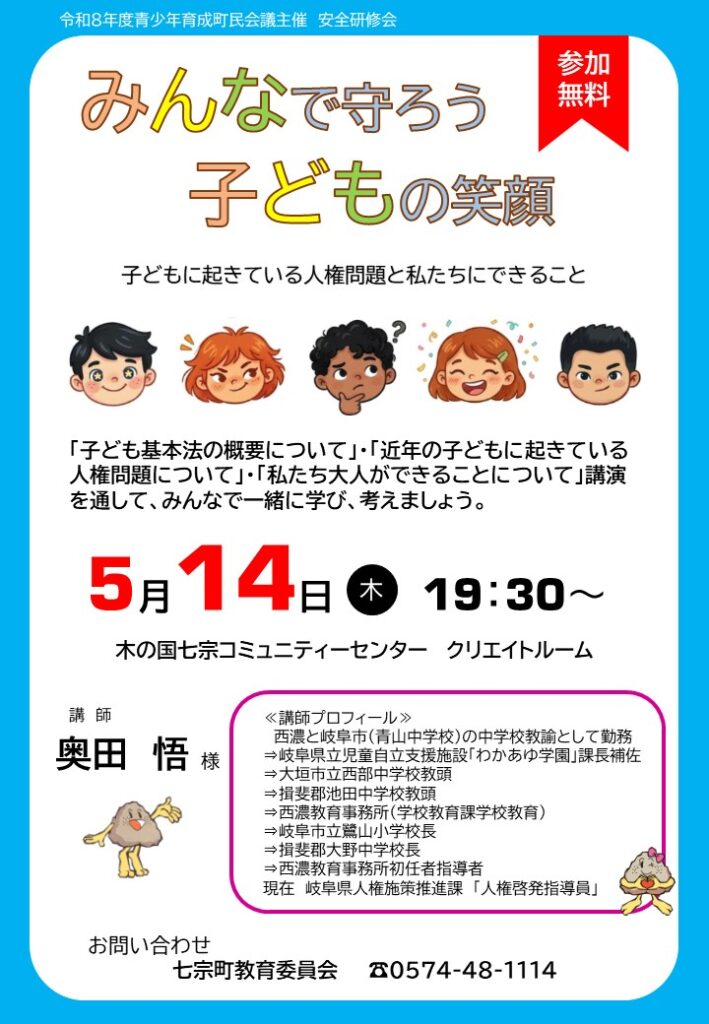 「子どもの人権講話~みんなで守ろう 子どもの笑顔~」を開催します。